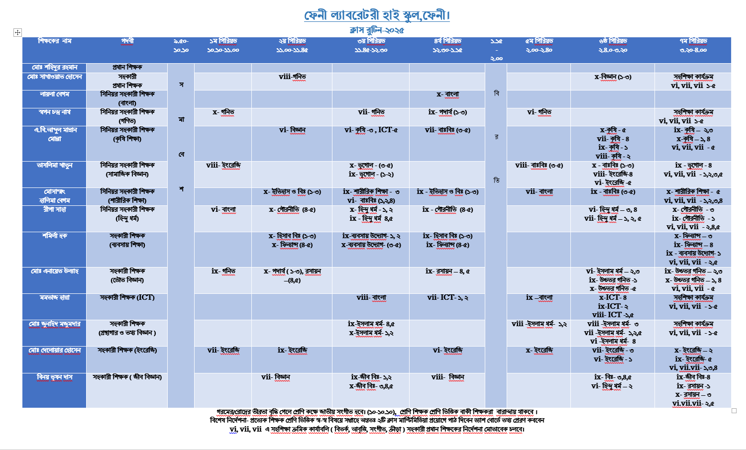 Class Routine